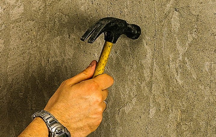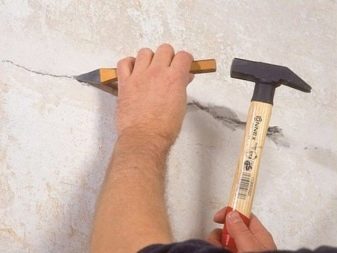 Um den Grad der Beschädigung des Gipses herauszufinden, müssen Sie mit einem kleinen Hammer auf die Oberflächenschicht klopfen, und dies sollte sehr sorgfältig durchgeführt werden, ohne großen Druck auf die Schläge auszuüben. Wenn das Klopfen klar und deutlich ist, ist dies ein Hinweis darauf, dass mit der Putzschicht alles in Ordnung ist. Wenn das Klopfen taub ist, ist das Material bei der Berührung zu trocken und alt, und wenn es angezapft wird, wird der Gips verschwinden - dann muss die Beseitigung eines solchen Gipses so schnell wie möglich beendet werden.