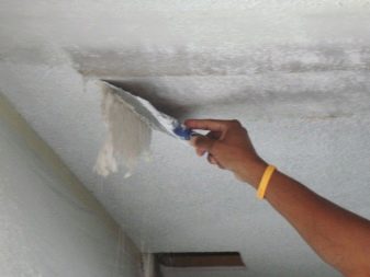 Die Technologie zum Entfernen von Gips von der Deckenoberfläche ist fast die gleiche wie von der Wand. In diesem Fall werden die Kräfte viel mehr benötigen, da es sehr schwierig ist, die Hände ständig in der angehobenen Position zu halten. Um den Abbau zu erleichtern, können Sie einen langen Stab an der Reibe, Spachtel, Schaber oder an einem anderen Werkzeug befestigen.
