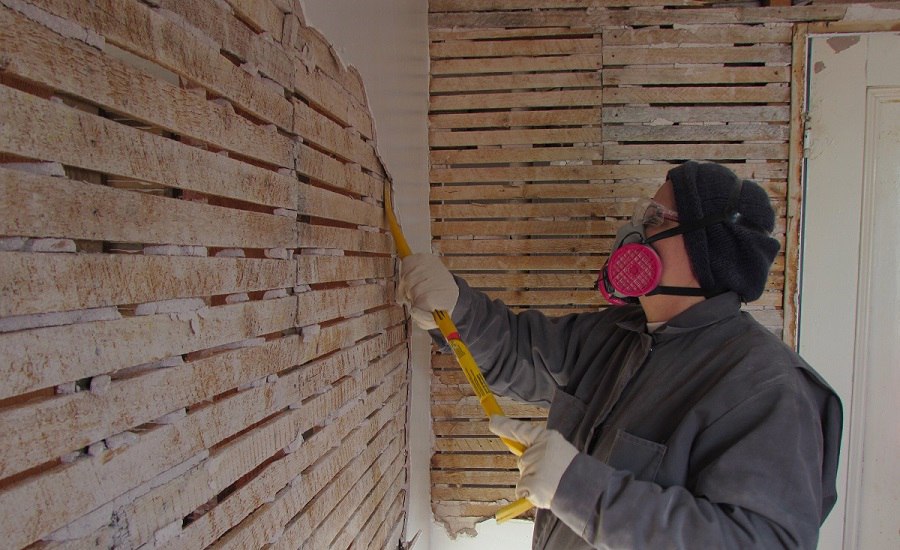 Manchmal dienen Schindeln zusätzlich zu Ziegeln als starke Stütze für eine dicke Putzschicht. Der Abbau einer solchen Wand ist zeitaufwendig und erfordert einen erheblichen Aufwand. Schindeln sind kleine Holzbohlen, die an der Wandoberfläche gepackt sind. Die Demontage einer solchen Wand beginnt mit einem sorgfältigen Abbrechen und Reinigen des Putzes im Bereich der Stützen und einer gründlichen Untersuchung und Beurteilung des Zustandes der Bodenoberfläche.Der einfachste und preisgünstige Weg, um eine Holzwand zu reparieren, ist, sie mit Gipskarton zu bedecken.