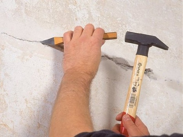 Die alte Putzschicht so bequem und schnell wie möglich mit den eigenen Händen abschlagen.