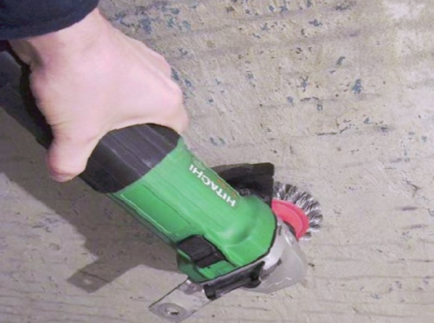 Mit Hilfe der Schleifmaschine ist auch eine Demontage der alten Putzschicht möglich. Mit einer Diamanttrennscheibe werden horizontale und vertikale Streifen auf der Oberfläche geschnitten, deren Tiefe der Tiefe der Putzschicht entspricht. Danach können die Reste mit dem gleichen Schaber oder der Kelle entfernt werden.