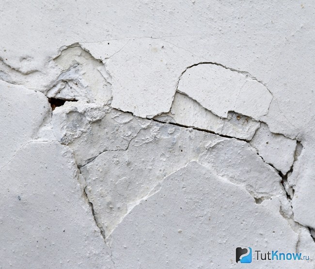 - Zement Meistens demontiert aufgrund von technologischen Fehlern beim Auftragen von Gips auf die Oberfläche.