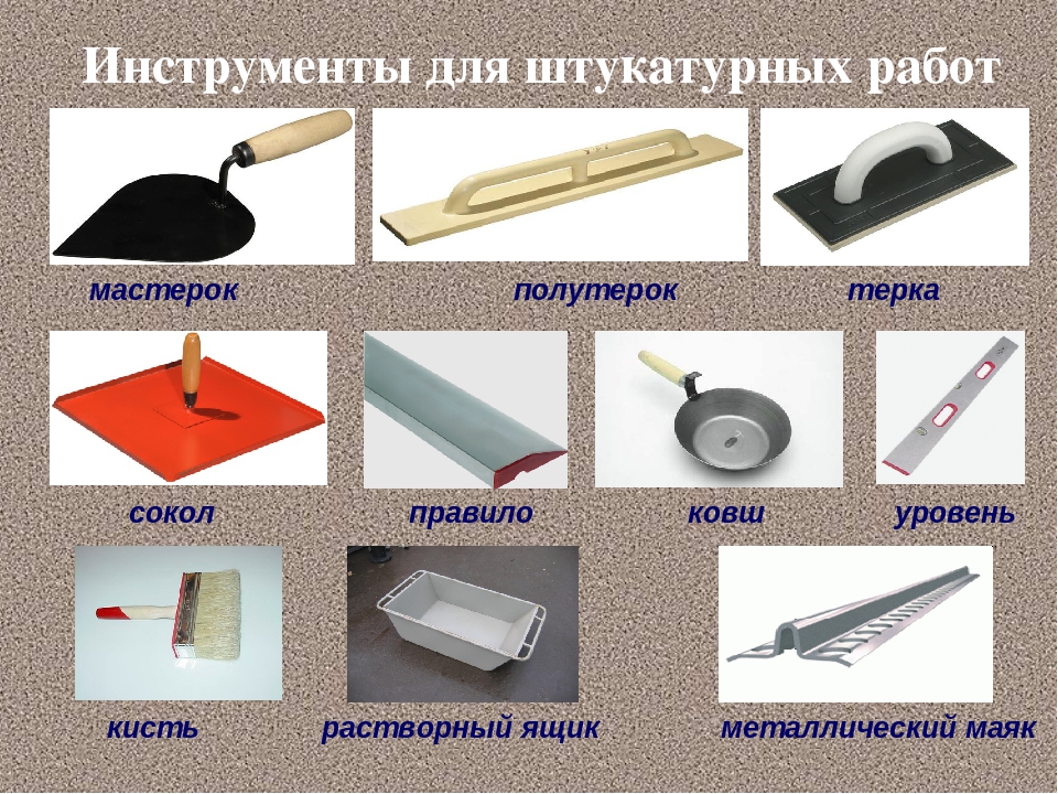 - der Meister wird einen Mörserbehälter, eine Kelle, einen Putzeimer, eine Reibe brauchen.