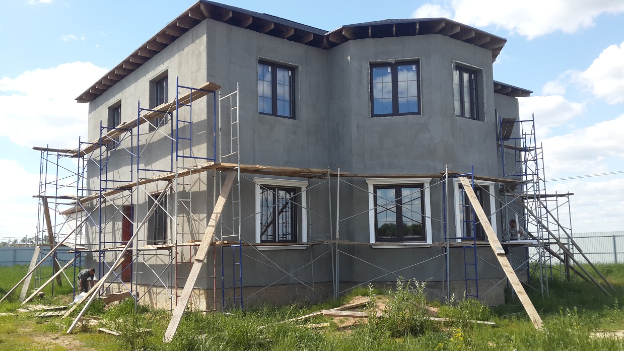 Zuerst wird das Finish drinnen und erst dann draußen durchgeführt - sonst bildet sich im Inneren des Hauses übermäßige Feuchtigkeit.