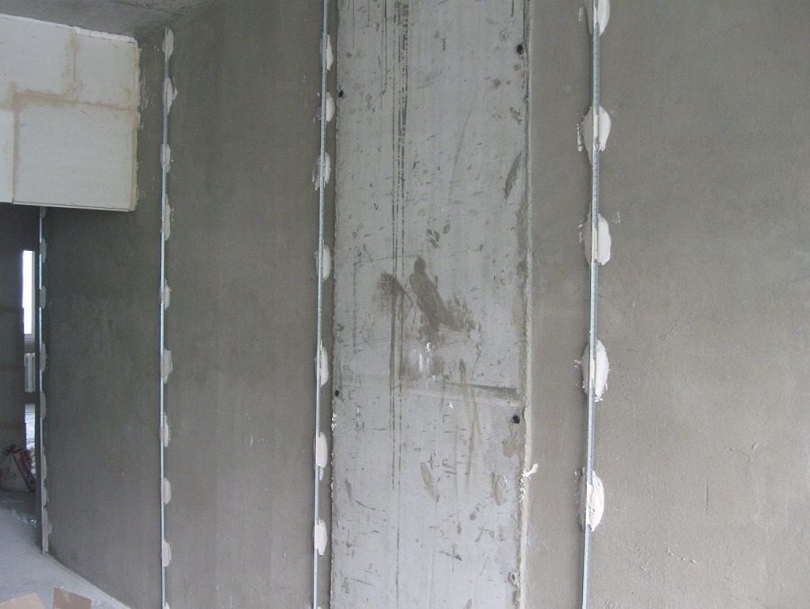 Mit Hilfe von Baken wird die Oberfläche der Wände des Raumes in einer Ebene angezeigt, nach der Sie beginnen können, grundlegende Arbeit zu leisten.