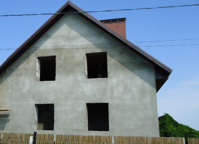 Wenn die Fassade nicht bearbeitet wird, verdunkelt sich der Porenbeton erst, dann beginnt er sich zu verformen, und sein äußerer Teil beginnt abzuplatzen.