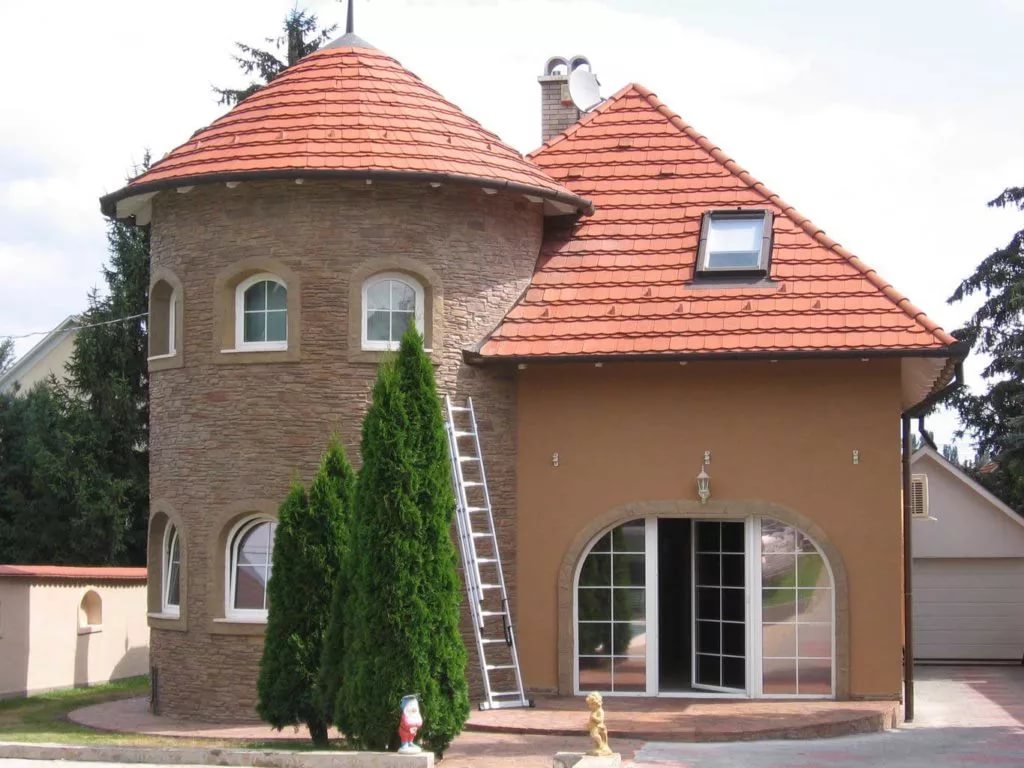 - Dank einiger Arten von Mischungen auf der Fassade des Gebäudes, können Sie eine Vielzahl von strukturierten Oberflächen schaffen und die mutigsten Wünsche der Besitzer des Hauses verwirklichen;