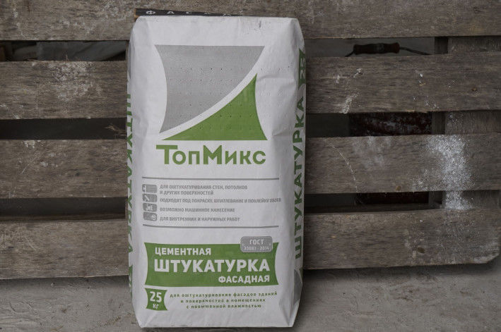 - Zement-Sand-Zusammensetzung - das am meisten verlangte Material für die primäre Bearbeitung der Fassade. Die Hauptbestandteile der Produkte sind Sand und Zement. Die hauptsächlichen positiven Eigenschaften der Zusammensetzung sollten als Vielseitigkeit und Festigkeit betrachtet werden, aufgrund derer es bevorzugt ist, sie zum Ausgleichen der Basen zu verwenden. Darüber hinaus weist das Gemisch eine hohe Feuchtigkeitsbeständigkeit auf und toleriert auch negative Temperaturen.
