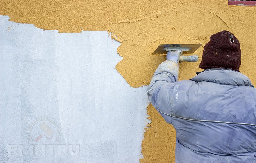 Unabhängig von der Art der gewählten Zusammensetzung, Vor der Arbeit muss die Oberfläche von Farbe und Schmutz gereinigt und entfettet werden. Fensteröffnungen sind am besten vor Spritzern von der Zusammensetzung geschützt. Verputzen der gefrorenen Basis ist verboten.
