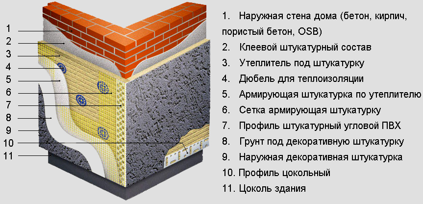 - die Produkte können zur Veredelung von beliebigen Untergründen verwendet werden - Mauerwerk, Beton, und es gibt auch Mischungen, mit denen mit Mineralwolle und Schaumkunststoff isolierte Wände verarbeitet werden;