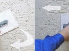 - Arbeiten mit Strukturputz tolerieren keine Verzögerungen. Wenn Sie den Arbeitsablauf dehnen, wird die visuelle Ausrichtung der zugeschnittenen Bereiche nicht ausgeschlossen.