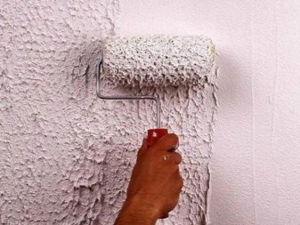 Behandeln Sie die Oberfläche unter dem strukturierten Putz ist grundiert, Tauchen Sie die Walze in einem Behälter mit einer Lösung und rollen über die gesamte Fläche der Wände. In den Ecken müssen Sie einen flachen Pinsel verwenden.