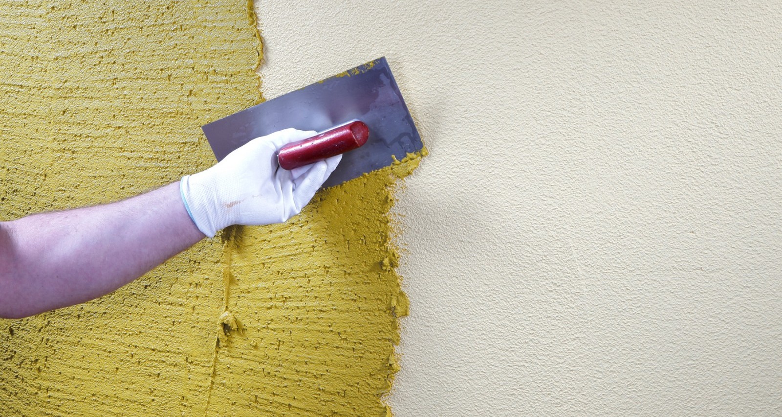 Die Hauptbestandteile sind die Pulverzusammensetzung der weißen Farbe und der Grundierung, der Anteil sollte ungefähr 6: 2 sein. Die Masse wird zu der Textur von dicker saurer Sahne geknetet, und dann wird die Breimischung oder das Pigment hinzugefügt, wenn gefärbter Gips benötigt wird. Die Lösung wird erneut gerührt und auf die Wände aufgetragen.