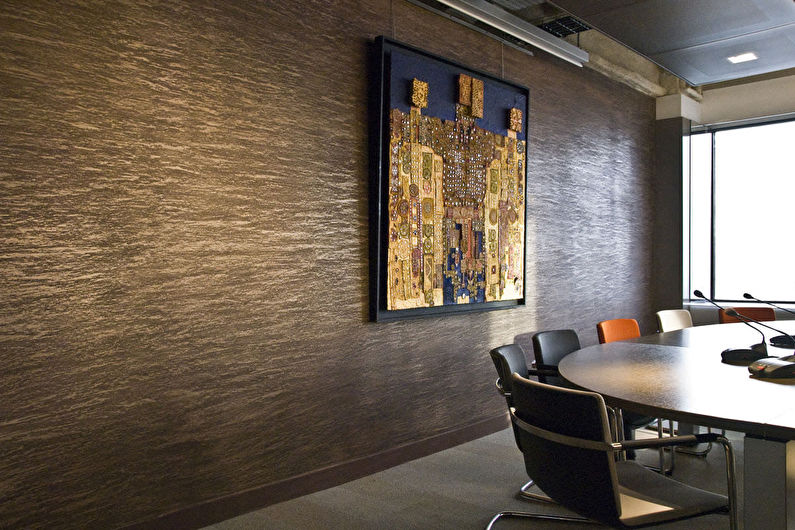 - Dekorputz und flüssige Tapete - nicht das Gleiche. Verwechsle sie nicht, denn es ist die Putzmischung, die Erleichterung gibt und dir erlaubt, auf der Oberfläche zu malen.