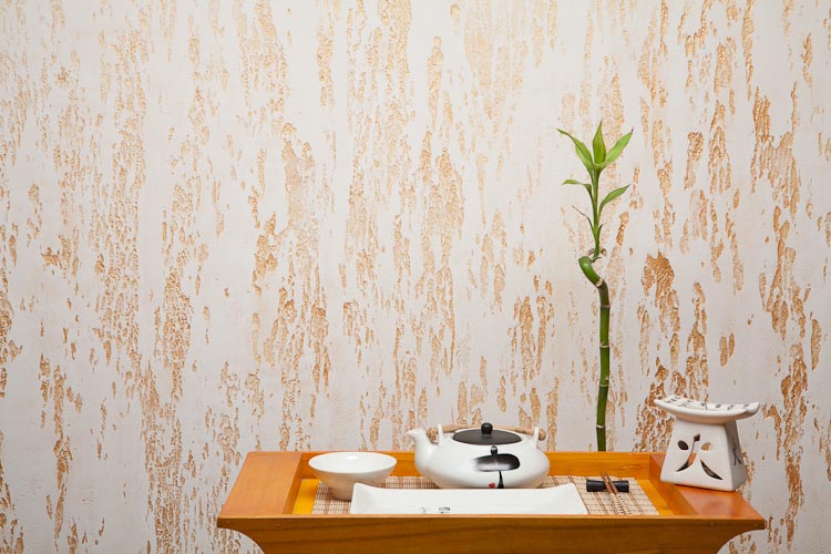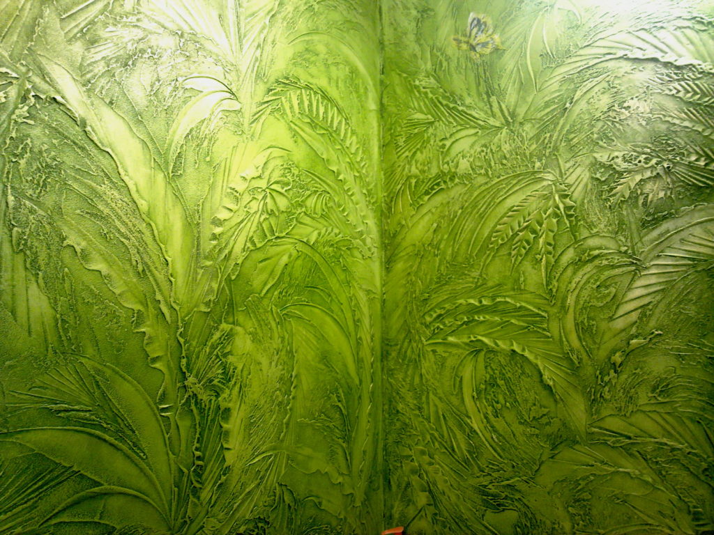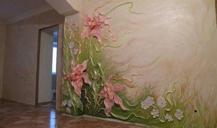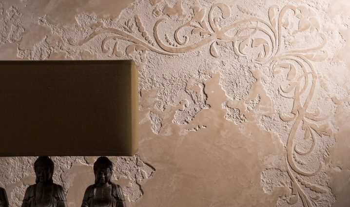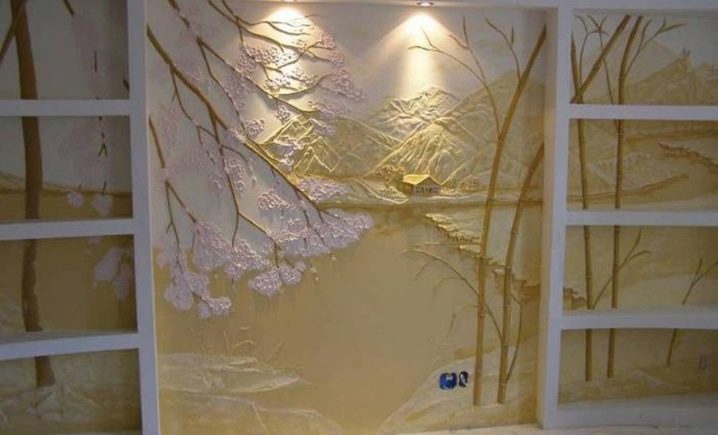 Diese Technik kann verschiedene Muster ausführen: von Blütenblättern und Bambusstangen bis hin zu komplexen Kompositionen. Wenn künstlerische Fähigkeiten es erlauben, dann erzeugen Pinselstriche wirklich ganze Bilder. Manchmal beinhaltet ein kreativer Ansatz das Dekorieren von Oberflächen, zusätzlich zu Gips mit Muscheln und kleinen Kieselsteinen. Solche Muster aus der Ferne ähneln oft der Küste, während andere, nach den Händen von Profis, den Tropen ähneln.