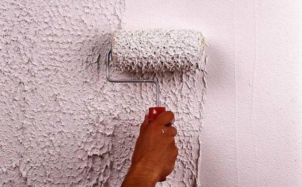 Diese Methode ist eine der einfachsten und schnellsten Arten von Arbeit. Es ist, dass nach dem Auftragen einer Schicht Dekorputz muss die Oberfläche einmal von oben nach unten rollen. Verwenden Sie in diesem Fall den Film, die Wäscheleine, das pflanzliche Netz, das Kunstleder, und wickeln Sie eine ausgewählte Materialart, die das Relief bildet.Wenn Sie eine raue Oberfläche unter einem Pelzmantel benötigen, verwenden Sie eine Rolle mit einem langen Nickerchen.