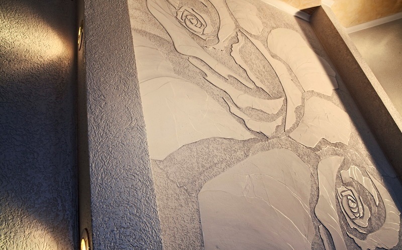 Eine der besten Entscheidungen für die Registrierung, zum Beispiel ein Schlafzimmer oder das Kinderzimmer. Die Schaffung von Relief mit anschließender Einfärbung verändert radikal die Vorstellung von den Möglichkeiten von Gipsgemischen.