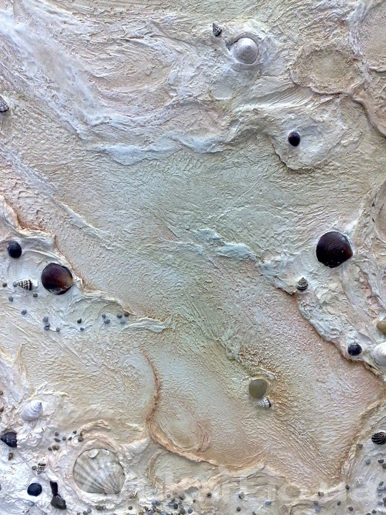 Im Folgenden finden Sie einige einfache Möglichkeiten zum Erstellen eines Reliefmusters. Zunächst wird die Masse mit einer Schicht geringer Dicke (0,3-0,6 cm) auf die getrocknete Bodenschicht aufgetragen.