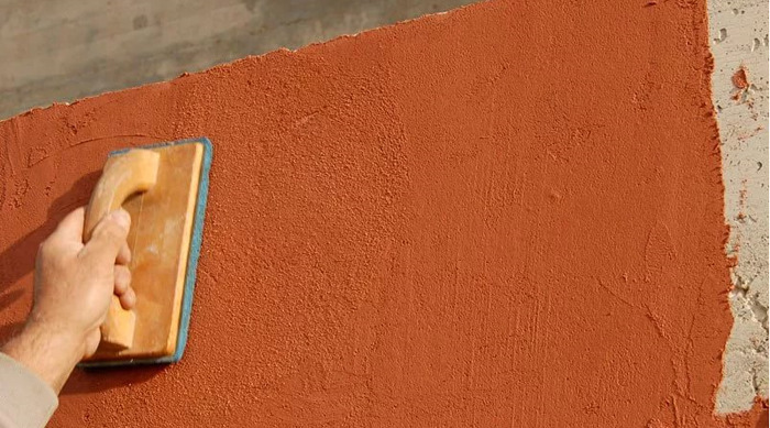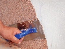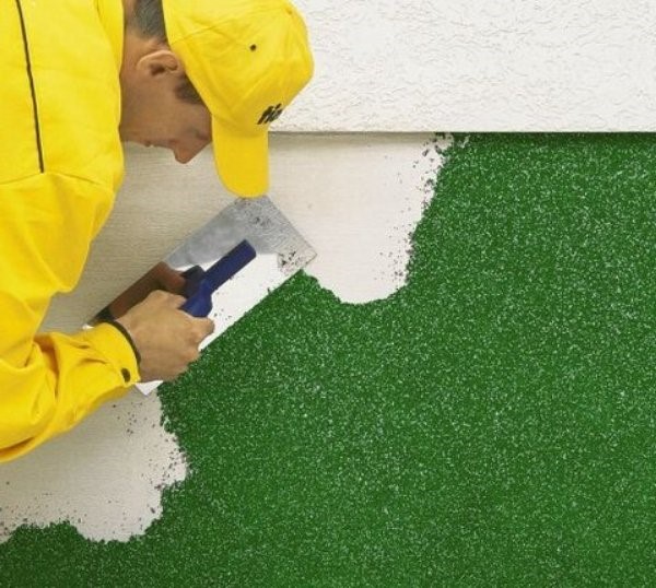 Eine Vielzahl von mineralischen Putz ist Terrazitovaya, ein besonderer Charakter, der sich durchsetzt Glimmer, Marmor und Glas. Zur Dekoration wird Pigment zu der Lösung zugegeben, ein attraktives Aussehen wird durch Phasenzyklen erreicht.
