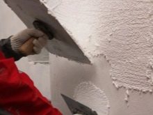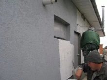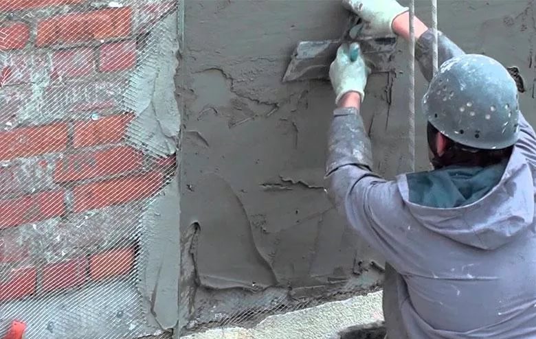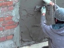 - für die Arbeit ist es nötig, das Gerüst zu installieren, das notwendige Werkzeug vorzubereiten, die volle Putzmischung zu kaufen;