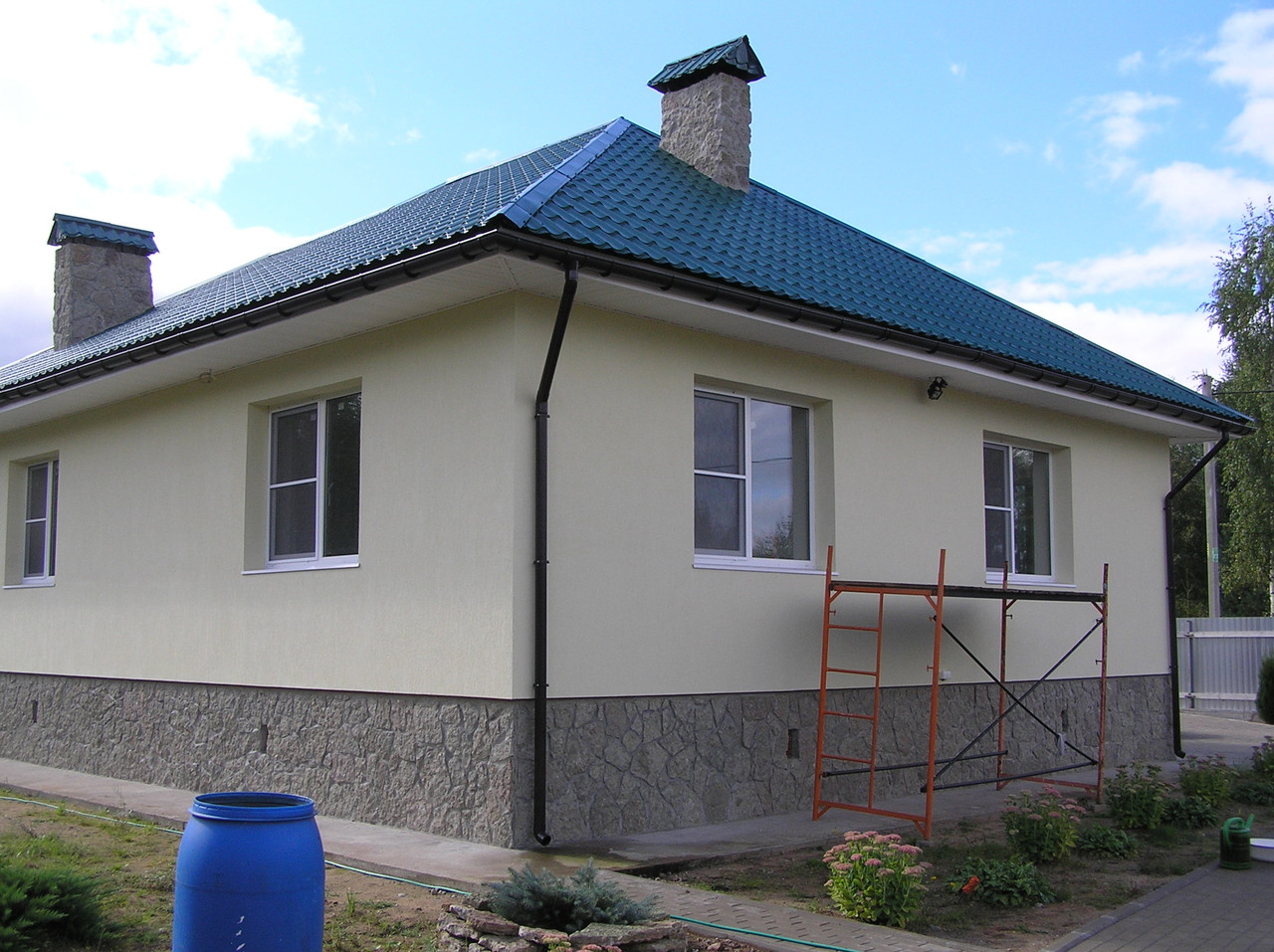 Die einfachste Art, Fassadenpflaster für Gasblöcke, Ziegel oder Wände aus Porenbeton aufzunehmen. In diesem Fall können Sie alle Arten von Fassadenputzen anwenden, aber vergessen Sie nicht, die technologischen Eigenschaften ihrer Anwendung zu berücksichtigen. Ansonsten kann sich der Bauherr allein auf seinen Geschmack und die Höhe des für die Gestaltung der Fassade vorgesehenen Budgets verlassen. Natürlich, Silikon-Gips-Mix wird so lange wie möglich dauern. Es wird ziemlich teuer sein, aber keinen Ersatz für 25 Jahre erfordern.