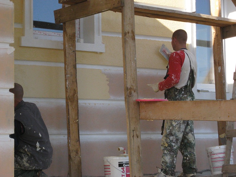 Die Anwendung von Fassadenputz erfordert zwar Kenntnisse und praktische Erfahrung, jedoch kann ein Anfängerbauer, nachdem er die grundlegenden technologischen Anforderungen studiert hat, auch das Verputzen einer nicht zu großen Fassade durchführen.