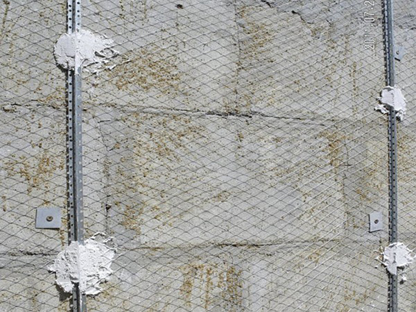 - die Oberfläche der Mauer ist mit Baustahlmatten bedeckt;