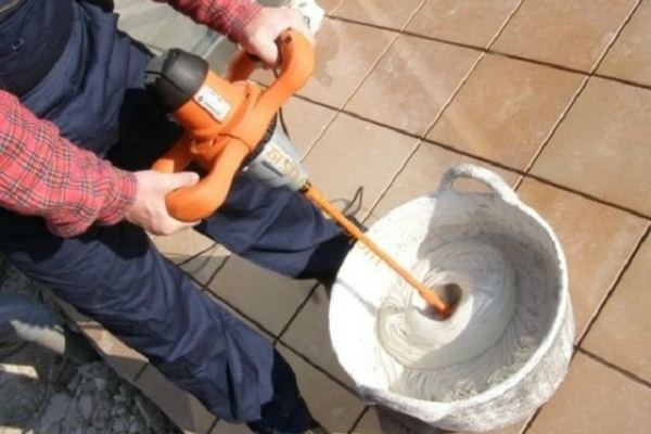 - Zum Mischen wird die trockene Zusammensetzung mit Wasser verwendet Konstruktionsmischer;