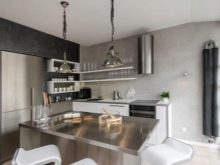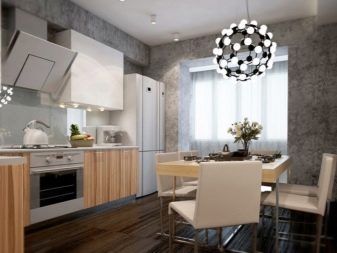- Industrieller Stil passt Betonwände perfekt in das Gesamtbild ein. Ein wenig Wärme und Komfort können mit Hilfe der Dekoration der Küche und dem Boden "unter dem Baum" hinzugefügt werden.
