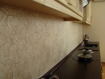 - Mineral Gips. Diese Art von Finish besteht aus natürlichen Materialien. Die Basis aus Zement oder Gips wird mit Partikeln aus Granit, Marmor oder Quarzsand ergänzt: Sie geben eine Vielzahl von dekorativen Effekten. Zementarten von Zusammensetzungen werden oft für die Außendekoration verwendet. Gipsputz für das Design der Küche ist nicht die beste Option: Gips verträgt keine hohe Feuchtigkeit, beginnt Wasserdampf zu durchdringen, verformt sich und schwillt an - diese Art von Finish wird kurzlebig und unpraktisch sein.