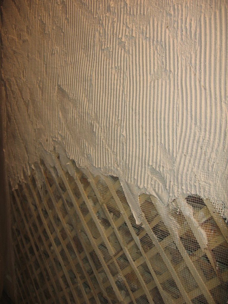 Bei der Verlegung von Gipsgemischen an den Fugen von Holztrennwänden mit Beton- oder Steinbasen können Sie das Metallnetz einnageln.