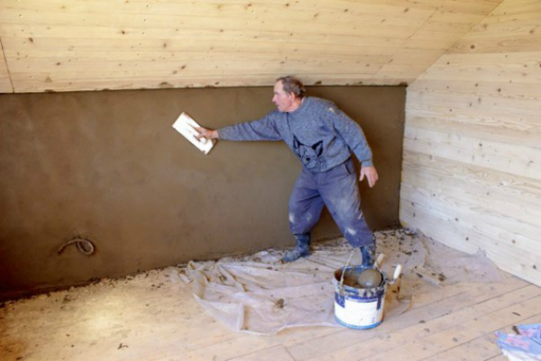- Es wird empfohlen, in einer warmen Jahreszeit zu beenden. Übermäßige Wärme, wie Kälte, kann die Haftung des Putzes auf einer Holzunterlage beeinträchtigen.Die Lufttemperatur sollte 10-20 Grad betragen und die Luftfeuchtigkeit sollte durchschnittlich sein.