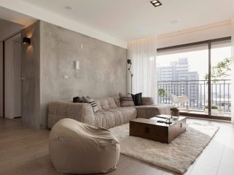 Natürlich muss die Beschichtung von dekorativen Putzwänden, die eine Imitation eines Steins, Holzes oder Betons erzeugen, zum Stil des Raumes passen. Bis heute nutzen Innenräume im Stil von Loft und Hi-Tech diese Designlösung aktiv.