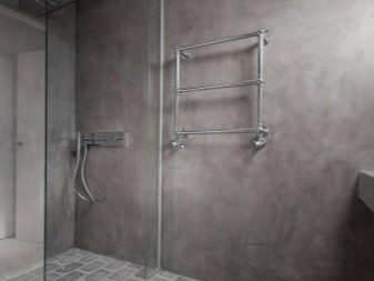 - Mikrobeton - Es ist eine Mischung, die aus Zement besteht.Es ist mit Quarzmehl, Polymeradditiven und Farbstoffen angereichert. Diese Zusammensetzung hat eine hohe Duktilität, eine stärkere Hygroskopizität und Wärmebeständigkeit und absorbiert auch keine Gerüche.
