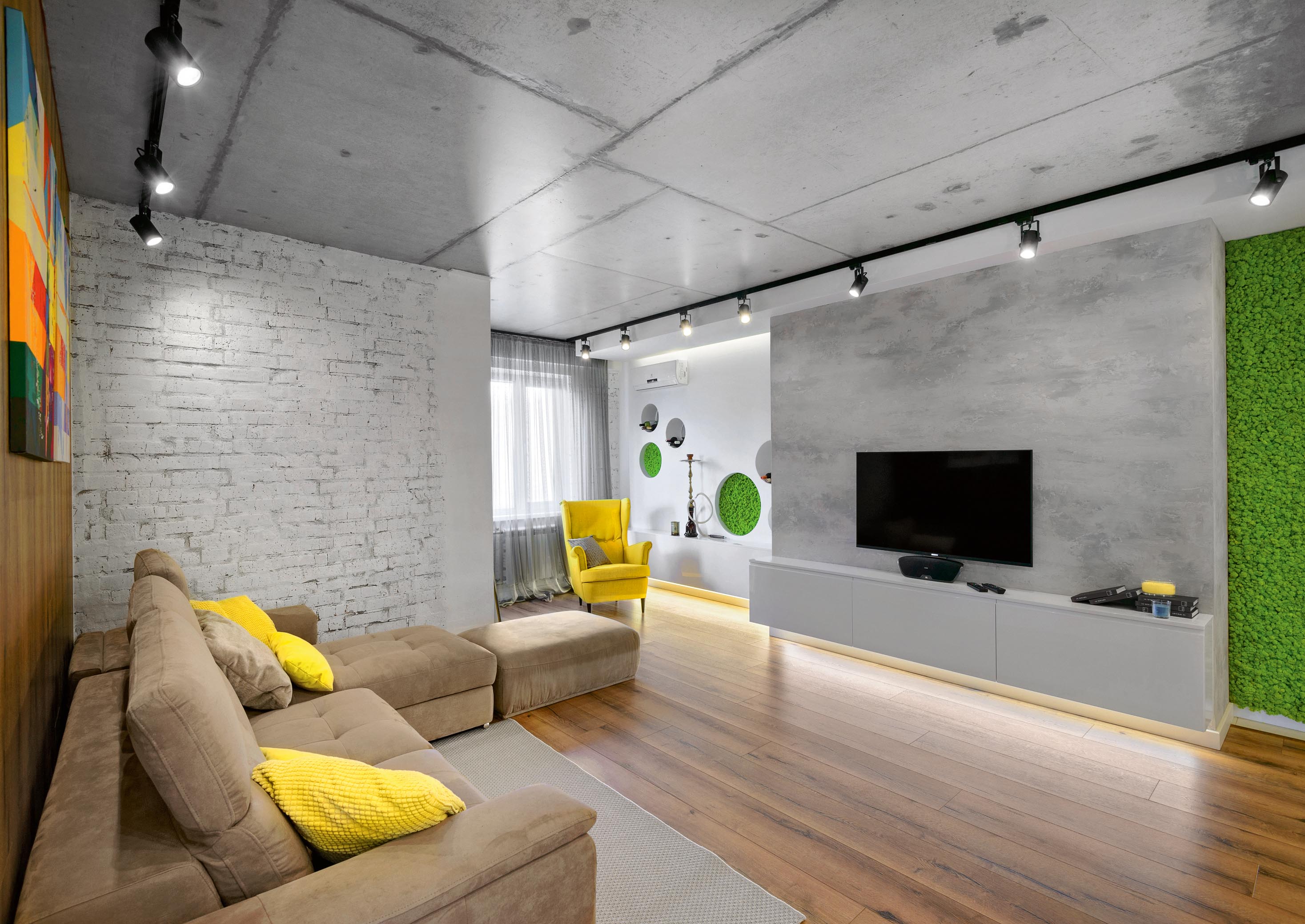 - Erstellen Sie keine scharfen Kontraste in einem Raum mit einer Betonwand;