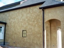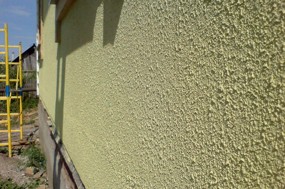 - Außenputz mit der Struktur "Lamm". Es fällt sehr hell und fröhlich Schatten.