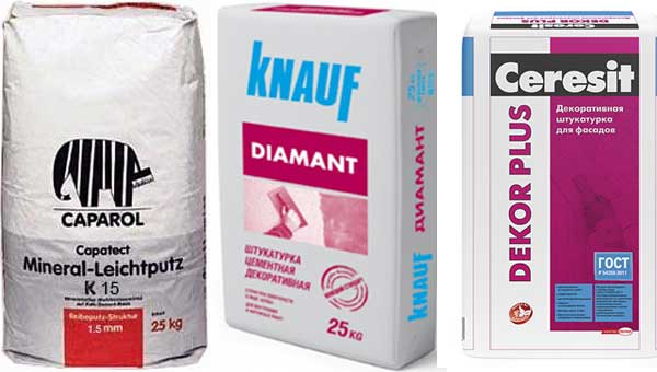 Mineralische Dekoputze eignen sich gut zur Dekoration von Wänden in Wohnungen, sie sind stark und langlebig. Und hier für die Straßenarbeit ist es besser, sie nicht anzuwendenweil sie Angst vor Feuchtigkeit, Temperaturschwankungen, Sonnenlicht haben.