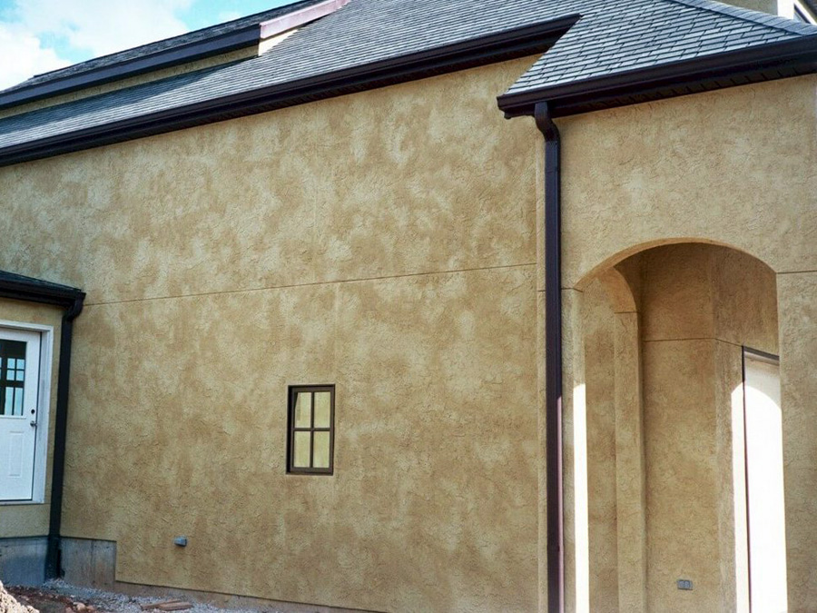Es ist notwendig zu malen, bis alle Unregelmäßigkeiten mit einer einheitlichen Farbe ausgefüllt sind.. Diese Methode wurde in der Fassadenarbeit verwendet.