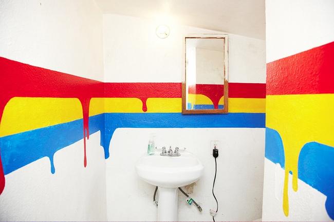 Das Malen in zwei Farben beginnt mit einer gewöhnlichen Walze, um das Malen in einem Grundton abzuschließen. Nach dem Trocknen müssen Sie einen Schwamm oder eine Schaumstoffrolle nehmen und in Farbe mit einer zweiten Farbe tauchen, so dass sie eine dünne Schicht auf der Oberfläche liegt. Dann passiert ein Schwamm sanft die vorstehenden Teile der Reliefoberfläche, so dass nur sie gefärbt sind, und die Vertiefungen behalten die Grundfarbe.