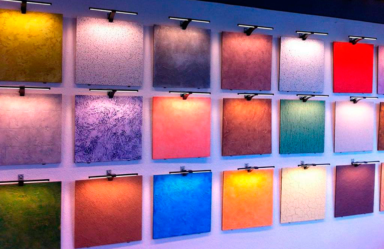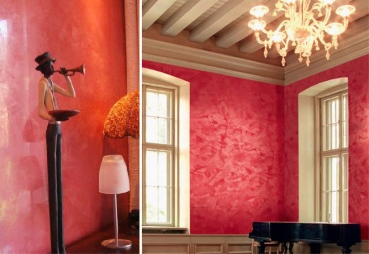 Da der venezianische Putz selbst nach dem Auftragen komplizierte Muster mit verschiedenen Schattierungen und Tönungen aufweist, ist er nicht lackiert. Aber die texturierten Arten müssen gemalt werden.