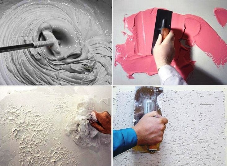 Alle Arten von Dekorputz werden als Trockenmischungen verkauft.die in einem bestimmten Verhältnis mit Wasser verdünnt und dann auf die Wände aufgetragen werden.Verschiedene Technologien der Anwendung, können Sie einen Spachtel, Bürste, Gummikamm oder sogar die Handfläche verwenden.