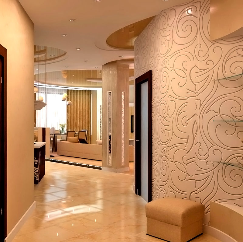- Endputz in der Halle unter dem Venetian. Sehr komplizierte Texturen erinnern nicht einmal daran, dass es sich um einen gewöhnlichen Putz auf Putz handelt.