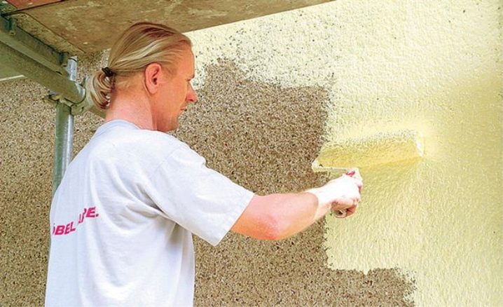 - Zweitens, die Grundierungslösung ist in der Lage, die kleinen Poren in der dekorativen Textur des Putzes zu schließen, es wird keine Farbe bekommen, deshalb wird sein Verbrauch abnehmen.