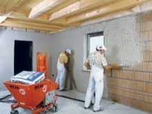 Im Falle der Auswahl von Gipsputze ist das Hauptkriterium für die Auswahl einer geeigneten Mischung jedoch der Umfang der Reparatur- und Veredelungsarbeiten. Wenn Sie vorhaben, in einem Raum oder in einer kleinen Wohnung zu reparieren, ist es sinnvoll, die Mischung manuell zu verputzen. Es kann ein Rotband oder Goldband sein, wenn die Wände zu ungleichmäßig sind, womit es eine ausgezeichnete Arbeit leistet. Bei den Plänen, den Raum mit hellen Tapeten zu kaschieren, lohnt es sich auf jeden Fall, die Wahl des weißen Lichts auf Knauf Eisberg zu unterbinden, um sich keine Sorgen über die Wahrscheinlichkeit hässlicher Lücken in den Leinwänden leichter Farben machen zu müssen.