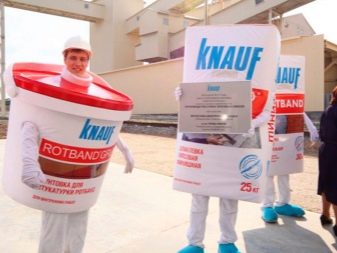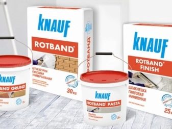 Die Linie der trockenen Gipsputzgemische Knauf wird neben dem in Betracht gezogenen Rotband durch verschiedene andere Arten von Ausgleichsbeschichtungen mit Polymeradditiven repräsentiert. Das: