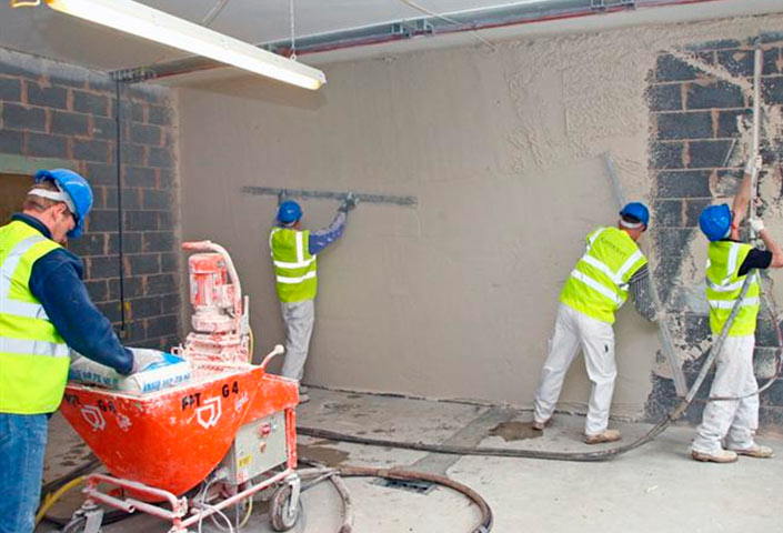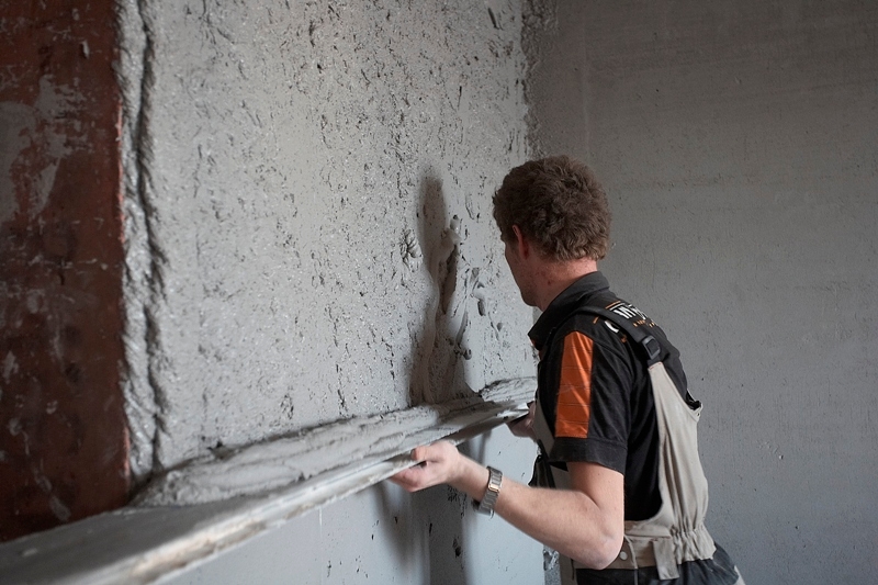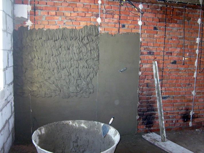 Außenarbeiten und Veredelungen von Räumen mit hoher Luftfeuchtigkeit - Kellerräume, Wäschereien, Produktionsstätten werden mit Zementputzen von Knauf ausgeführt.