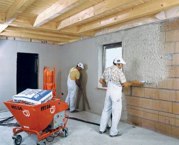 Der Hauptunterschied zwischen Knauf-Pflastern liegt in der Anwendungsmethode. Rotband, sowie die oben genannten drei Arten von Mischungen von Hand verputzen. Aber es gibt noch drei universelle Gipsputze - Knauf MN Start und hochadhäsive Compounds Knauf MP 75 und Knauf MP 75 Ultra,die zum maschinellen Verputzen von Oberflächen mit Hilfe von mobilen Baueinheiten vorgesehen sind - Putzstationen, die es ermöglichen, kontinuierlich mit Trockenmischungen zu arbeiten.