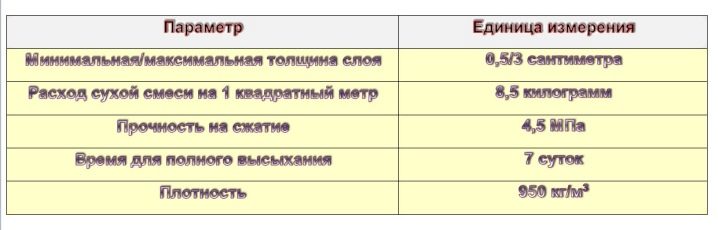Ansprüche an eine Putzausgleichsmasse betreffen üblicherweise eine hohe Abbindegeschwindigkeit der Mörtelmischung. In der Regel klagen Neuinstallateure über Reparaturen, da es für sie schwierig ist, mit hoher Geschwindigkeit zu verputzen, um im vorgegebenen Zeitlimit eine Lösung zu erarbeiten.