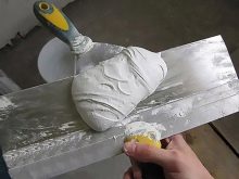 Als es fast eine Stunde war, war die Zusammensetzung viel härter geworden, hatte aber keine Zeit auszutrocknen. Während dieser Zeit können Sie beginnen, die Oberfläche zu ebnen. Mittels einer Latte aus Metall werden Unebenheiten geglättet und Oberflächendefekte entfernt. Die Gruben und Rillen sind auch mit Gipsgemisch gefüllt. Auf eine solche Schicht kann Kachel gelegt werden.