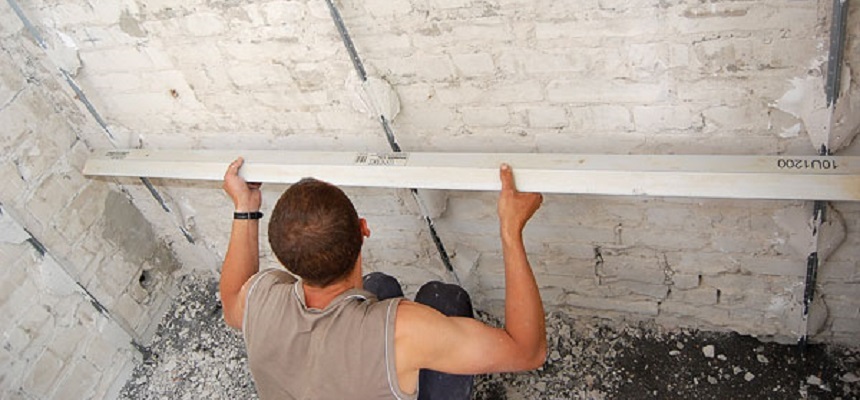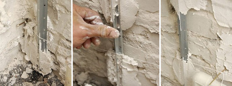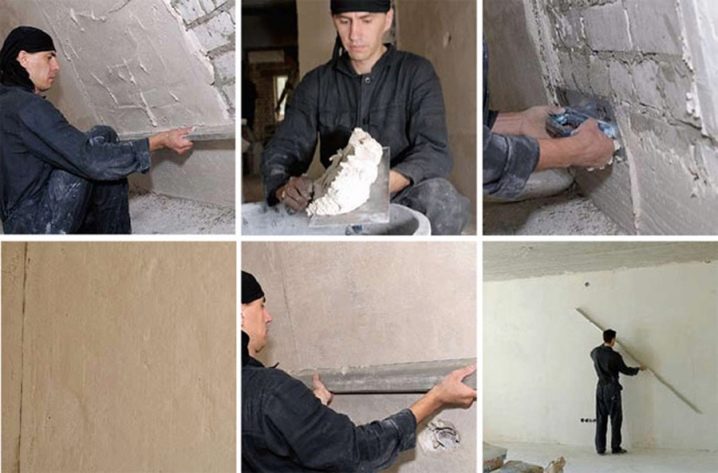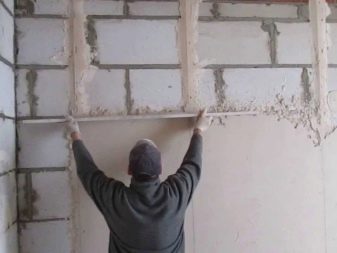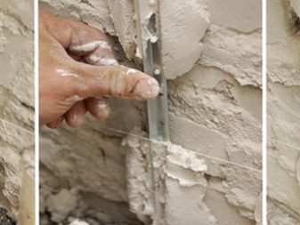 Leuchttürme müssen geschnitten werden, sich auf ihre notwendige Höhe entschieden haben und dann in einem Abstand von 130-180 Zentimeter in den Putz gedrückt werden. Sie sind auf der gleichen Ebene ausgerichtet, und danach wird die Mischung in Übereinstimmung mit ihnen verteilt.